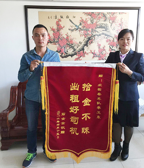 北園春運(yùn)輸公司出租車女司機(jī)拾金不昧送還失物